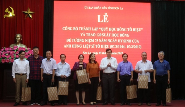 Nhân dịp này, Quỹ học bổng Tô Hiệu đã trao 40 suất học bổng cho học sinh của 4 huyện (Mộc Châu, Mai Sơn, Mường La và Thành phố), trị giá 1 triệu đồng/suất; chuyển trao 80 suất cho Hội khuyến học các huyện để trao cho học sinh có thành tích học tập, rèn luyện tốt tại địa phương.