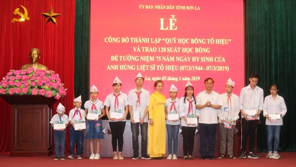 Tại buổi lễ, UBND tỉnh Sơn La đã công bố quyết định về cấp giấy phép thành lập và công nhận Điều lệ Quỹ học bổng Tô Hiệu tỉnh Sơn La. Quỹ “Học bổng Tô Hiệu” được thành lập theo Quyết định số 82/QĐ-UBND ngày 10/1/2019 của UBND tỉnhQuỹ học bổng Tô Hiệu là tổ chức xã hội tự nguyện của các cá nhân, tổ chức trong tỉnh tâm huyết với sự nghiệp “trồng người” nhằm nâng cao chất lượng giáo dục và đào tạo của tỉnh Sơn La; trụ sở đặt tại Hội Khuyến học tỉnh. Cơ cấu tổ chức gồm: Hội đồng quản lý Quỹ; Ban kiểm soát quỹ; văn phòng đại diện, chi nhánh (nếu có). Việc thành lập “Quỹ học bổng Tô Hiệu” sẽ góp phần động viên, cổ vũ phong trào học tập, rèn luyện, tu dưỡng phẩm chất đạo đức của học sinh; khuyến khích các em tích cực trong học tập để trở thành người công dân có ích cho xã hội.